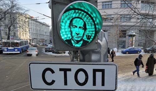 12、俄羅斯:普京版交通信號(hào)燈,2012年2月13日,俄羅斯莫斯科街頭現(xiàn)“普京版交通信號(hào)燈”,支持者希望群眾為普京“亮起綠燈”。