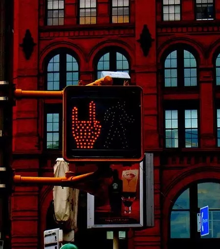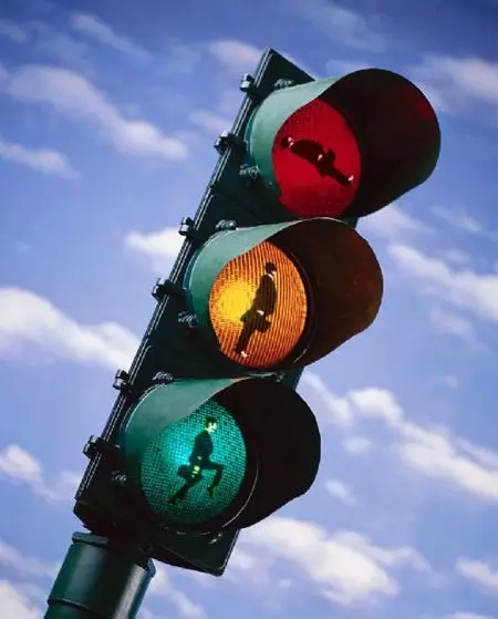 8、哥倫比亞波哥大市,后現(xiàn)代藝術(shù)家設(shè)計(jì)的交通信號(hào)燈,綠色樹(shù)葉不僅是前進(jìn)的意思,而且在這個(gè)圖示中還有一個(gè)誘惑性的字母A,含義極為深刻,引人深思。