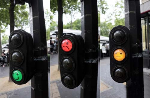 11、巴黎街頭的紅綠燈,紅燈對(duì)應(yīng)的是哭臉,綠燈對(duì)應(yīng)的是笑臉,黃燈對(duì)應(yīng)的是無(wú)表情。
